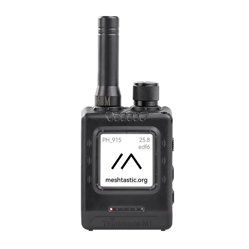 I opted to get two of the Elecrow ThinkNode M1 radios, as they have a small eInk display, a couple buttons, and a GPS module with an external switch, all in an injection-molded case. Very nice! These features mean that, at least for the Meshtastic firmware, you can use the radio stand-alone; the more typical use-case is to have your phone paired with it over Bluetooth, but with the little display, you can select from a set of pre-defined messages to send, and read received messages. The UI is still pretty limited, but it does work.